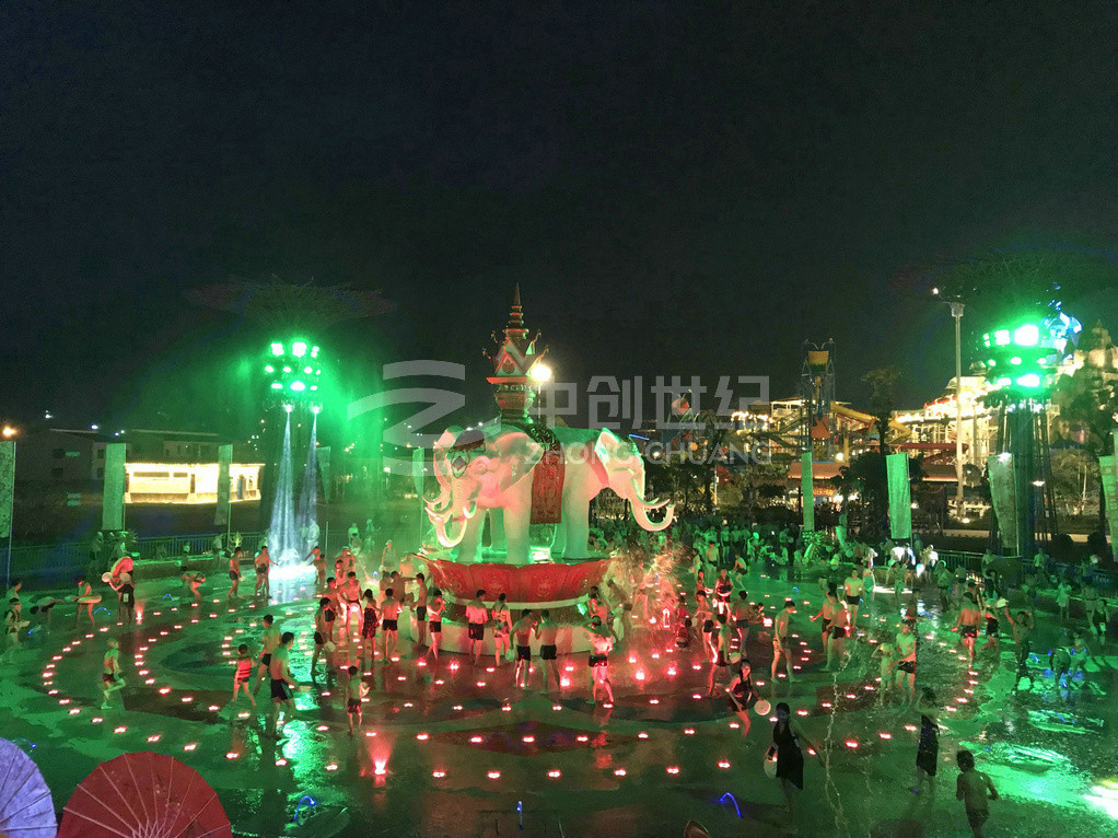 潑水廣場是玉林克拉灣斥資1500多萬元建造的廣西大型專業娛樂項目。廣場潑水面積超1200平方米,運用傣族基本元素,并結合當地文化,極具民族風情。