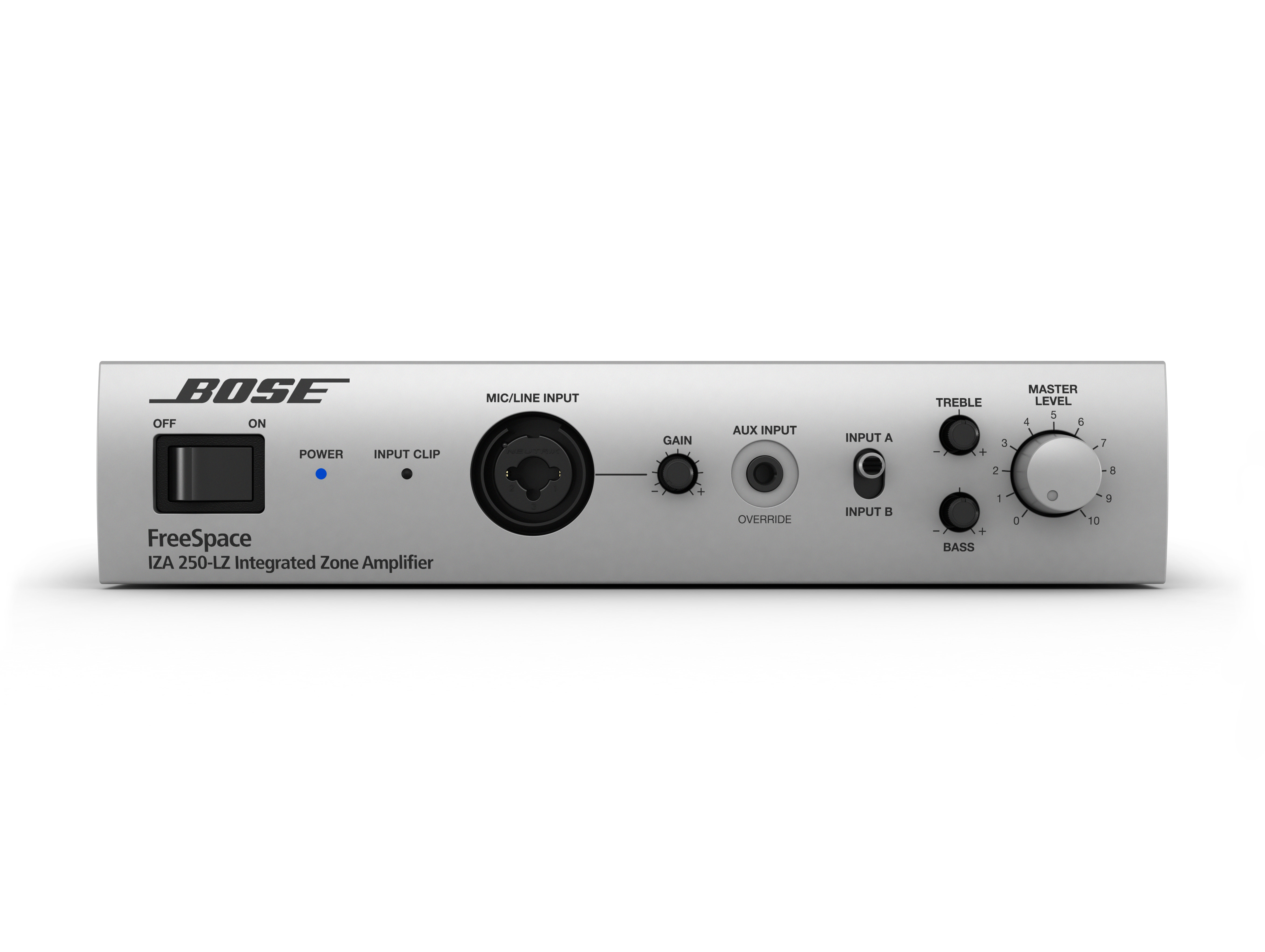 ● 便于終端用戶使用的前面板讓用戶可以輕松連接設備、進行音調調整或在兩個音源之間進行選擇。可選的壁裝 Bose 控制面板帶 A/B 開關用戶界面,使音量和音源選擇控制可以遠離放大器,方便用戶使用。
