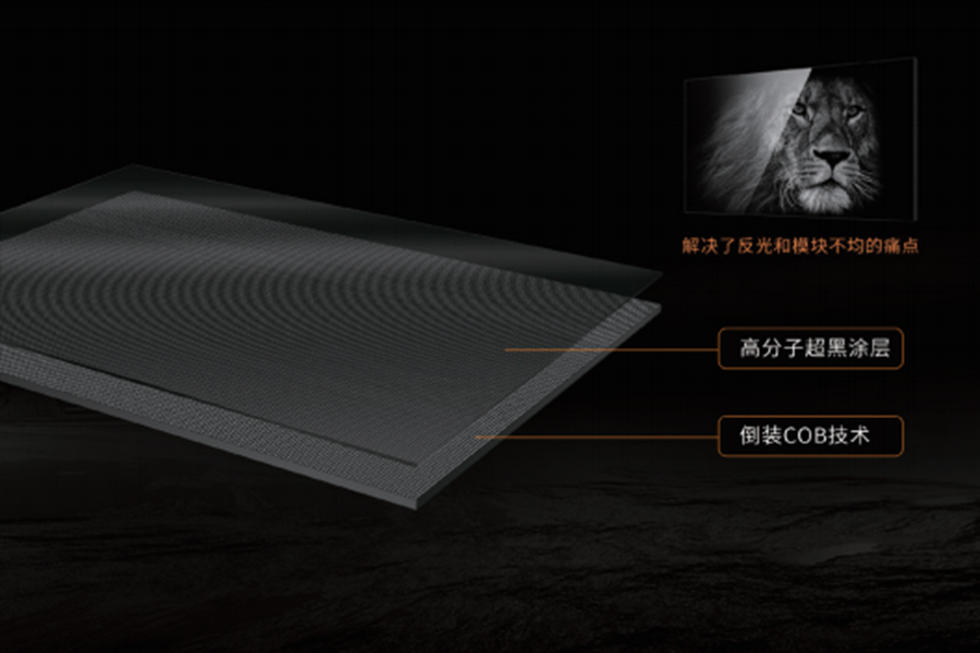 ② 倒裝COB技術,重新定義畫質:基于倒裝COB技術,屏幕表面采用高分子材料墨色涂層,帶來令人驚艷的對比度和黑色一致性。同時解決了屏幕表面反光和模塊化明顯的痛點,圖像細節(jié)纖毫畢現(xiàn),畫面栩栩如生。