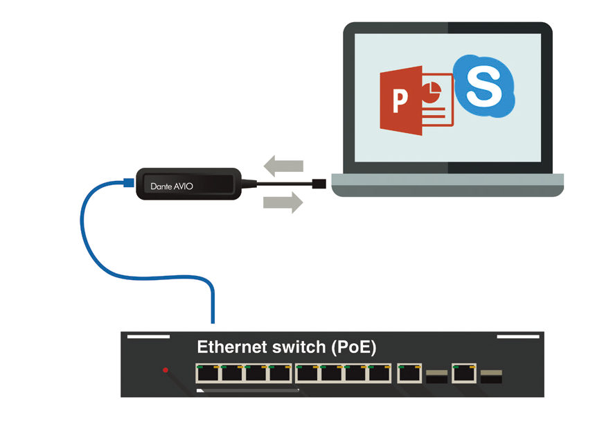Dante AVIO USB 適配器支持2x2 通道的雙向音頻,使 PC 和移動設備可通過標準 IP 網絡利用任何支持 Dante 的設備播放和錄制音頻。將媒體播放器、會議軟件、演示和錄音機等音頻應用連接到網絡上的揚聲器、話筒、調音臺和 DSP。Dante AVIO 系列適配器性價比高、體積小,可滿足移動應用需求,實現現代網絡的互聯互通,是每個專業音頻工作者工具箱中不可或缺的利器。DANTE AVIO USB-C 版不僅具備與 AVIOUSB 適配器相同的優秀性能,而且可通過任何 POE 網絡交換機為您的移動設備供電,確保持續連接。