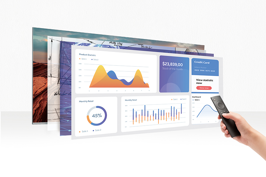 ① 超寬屏多內容展示更靈活:與傳統(tǒng)16:9LED顯示屏相比,C系列寬屏增加了33%屏幕空間,通過此屏幕您可以看到更大幅的內容,滿足更多需求,提升會議效率。