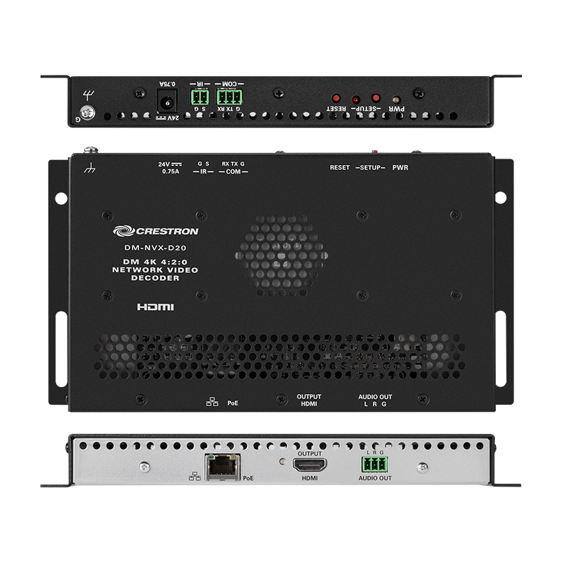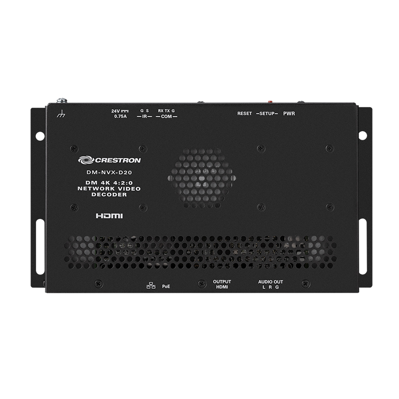 DM-NVX-D20 是一款緊湊型AV-over-IP解碼器,設計用于通過標準千兆以太網接收分辨率高達4K60 4:2:0的視頻。DM-NVX-D20具有基于Web的安全控制和管理、HDMI輸出、模擬音頻輸出、AES67發射和接收功能以及支持PoE的銅質以太網連接,提供解碼器解決方案,可在任何規模的DM NVX網絡視音頻安裝中提供價格和性能優化。