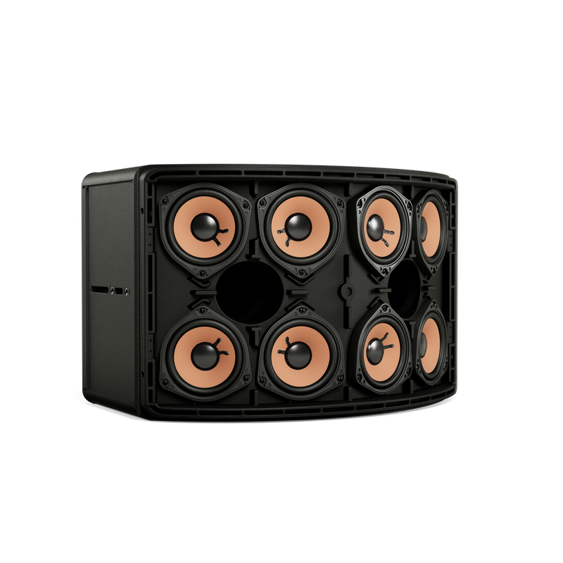 ● 8個4.5英過全頻揚聲器單元提供平滑的頻率響應、寬廣的擴散角度,實現卓越的功率處理能力和效率;